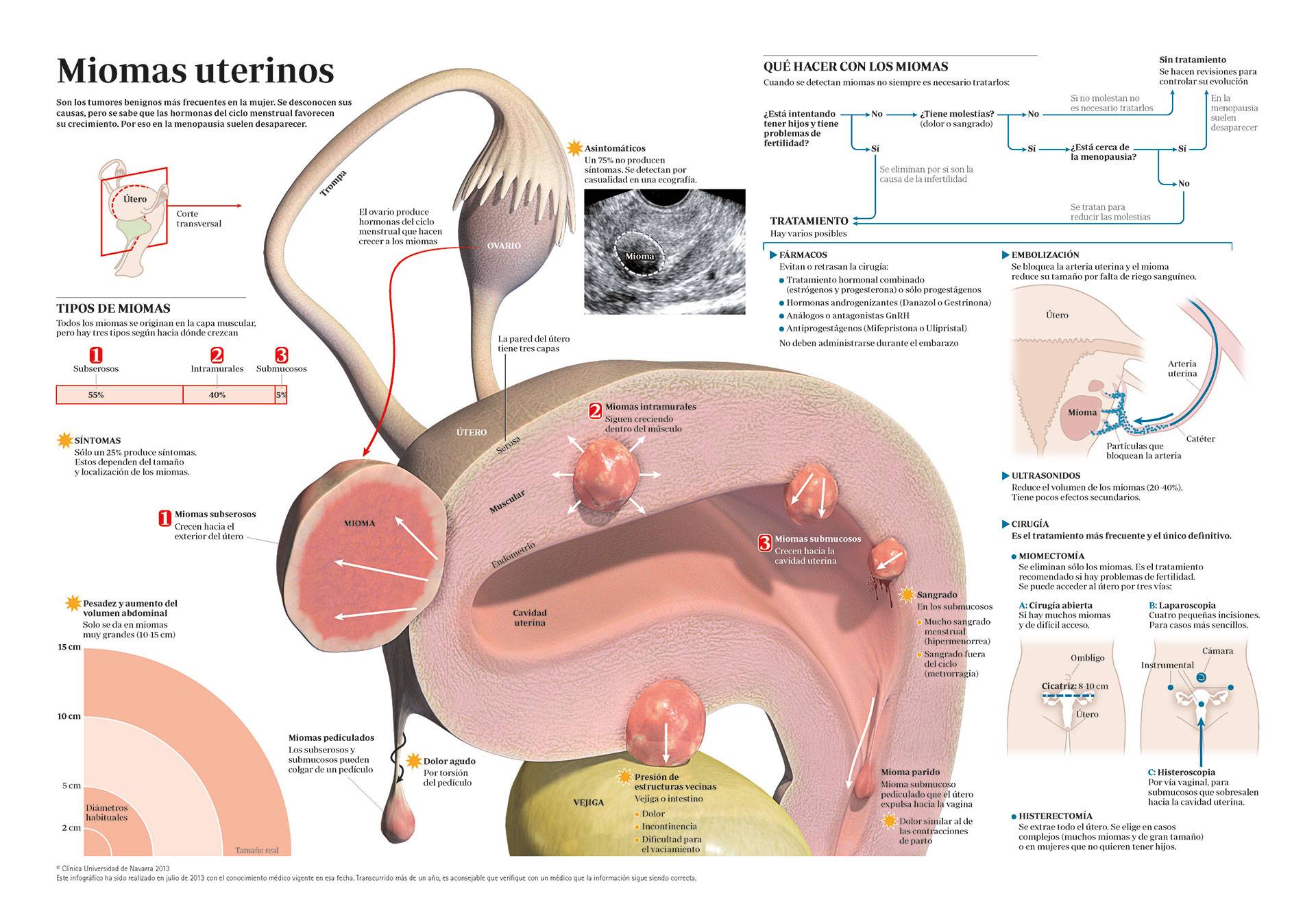 - Infertilidad. El mioma puede impedir la fecundación o la implantación debido a su localización en el útero (obstrucción tubárica o alteración de la anatomía normal).