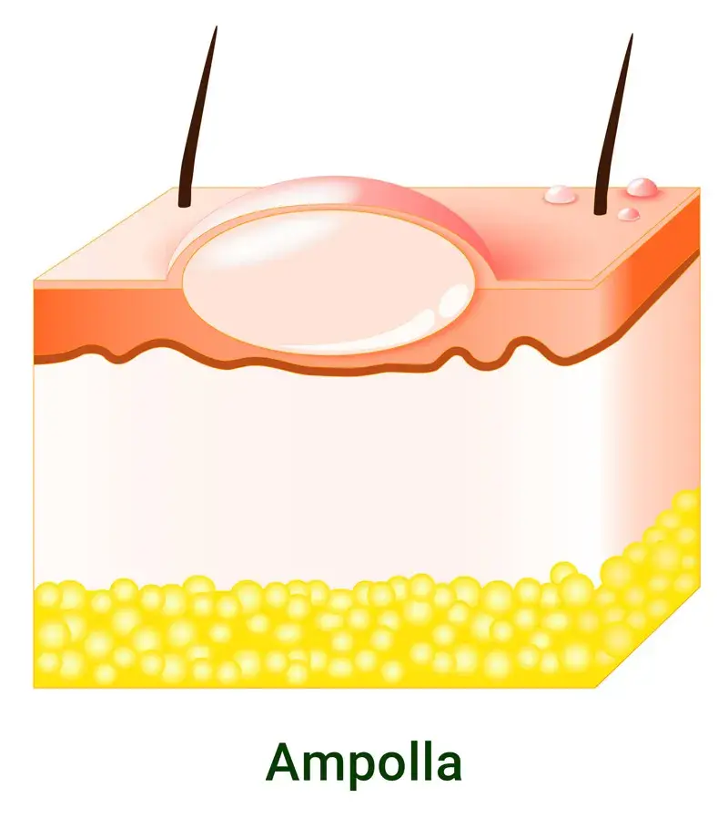 Las ampollas se asocian con quemaduras, reacciones alérgicas severas o fricción y pueden contener líquido seroso o sanguinolento.