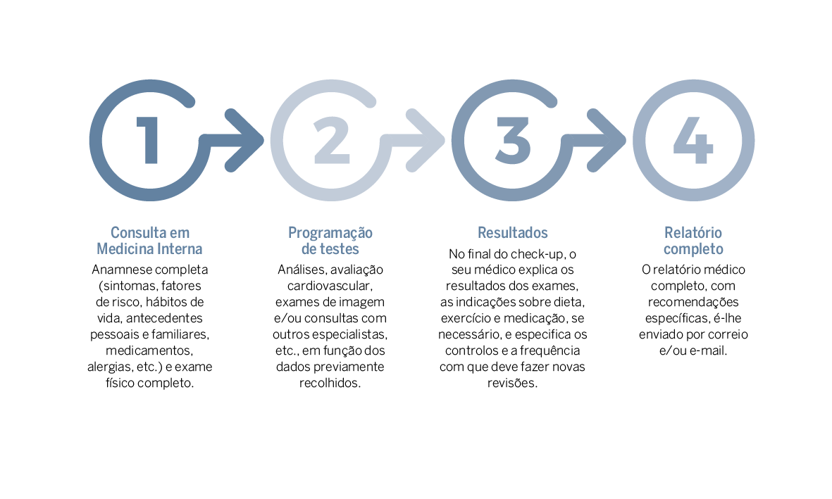 Após a consulta inicial, o médico especialista elabora o seu check-up com os testes de diagnóstico mais adequados às suas necessidades.